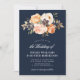bleu marine, doré à l'automne et motifs de couronnes florales rousses. Vous pouvez personnaliser le libellé, la taille du texte, les couleurs et la police de cette invitation de mariage.