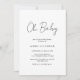 Baby shower moderne en noir et blanc avec un design simple avec "Oh Baby" dans un style rustique typographie script. Cette élégante invitation sans distinction de genre avec un agencement minimaliste est idéale que vous ayez un garçon ou une fille.