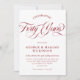 Invitation élégante rouge pour le dîner du 40e anniversaire de mariage en blanc avec des polices rouges. Invitation au 40e anniversaire de mariage avec des polices rouges sur fond blanc. Quarante Ans dans un script rouge tourbillonné. Ajoutez une photo du couple heureux célébrant leur 40e anniversaire de mariage au verso de l'invitation blanche et rouge.