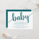 Invitation Script Turquoise simple | Baby shower bleu foncé