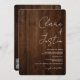 Une invitation de mariage moderne, chic et élégante avec des noms personnalisés avec une calligraphie manuscrite sur bois brun rustique vintage. Tous les textes, noms et couleurs arrière - plans sont personnalisables. Une invitation simple et minimaliste. Ajoutez votre code qr pour une invitation tout en un mariage avec rsvp, détails et plus d'infos.