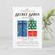 Notre Invitation Secret Père Noël Cadeau Exchange présente trois cadeaux d'aquarelle festifs centrés autour de vos informations de fête d'échange de cadeaux dans une typographie moderne amusante.
