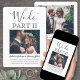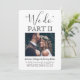 Famille Invitation et amis à vous voir dire "Je le fais" encore avec un élégant 2 photo moderne faire-part de mariage suite. Tout libellé est simple à personnaliser, y compris une citation qui dit "nous faisons partie II." Customisez-le pour toute célébration du mariage, comme une cérémonie de renouvellement du voeu, une réception du 1er anniversaire, une soirée post-elopement, un cocktail ou un dîner. Personnalisez avec les détails de votre choix, y compris la date du mariage, rsvp, le code vestimentaire, le site Web, etc. (IMAGE PLACEMENT CONSEIL : Un moyen facile de centrer une photo exactement comment vous voulez est de la rogner avant de télécharger sur le site Zazzle.) Le design moderne minimaliste noir et blanc présente deux images du couple marié, une calligraphie manuscrite branchée et une typographie chic de style machine à écrire. Que vous ayez fui ou non à cause de la pandémie ou que vous ayez été réduit à un minimonisme plus petit, plus intime ou micro-mariage, le bonheur jamais après la fête peut encore commencer. Félicitations à la mariée et au marié !