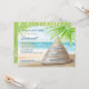 Invitation votre fête nuptiale pour partager votre journée spéciale avec ce design de coquillages lumineux, joyeux, contre le sable doré, le ciel bleu et l'accent feuille des palmiers frais. Parfait pour les mariages sur la plage, les mariages de destination, les mariages tropicaux, les mariages insulaires, les mariages d'été et d'autres lieux liés à la mer. Visitez la collection pour voir l'ensemble de la suite.