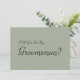 Cette belle carte d'invitation de toiletteur de 5" x 7". C'est mieux pour le marié. Si vous cherchez à demander à quelqu'un d'être votre toiletteur pour votre futur mariage, alors pourquoi ne pas choisir ces cartes de toiletteur. Cette carte d'invitation customisée fera de votre ami, frère, cousin, neveu, fils ou qui que ce soit d'autre que vous choisissez sentir cet extra spécial. Cette invitation est facilement personnalisée en cliquant sur le bouton customiser sous l'image où vous pourrez changer le texte, la police et la taille. Vous pouvez invitation vos meilleurs copains avec style avec ces invitations classe. Il convient au Best Man ou aux Groomsmen. Envoyez-leur cette carte de groomsmen.