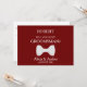 Ce 5" x 7" beau temps à votre service est demandé comme la meilleure carte d'invitation de l'homme Groomsman. C'est mieux pour le marié. Vous avez trouvé votre femme, mais vous avez toujours besoin de vos garçons. Envoyez-leur cette carte de groomsmen. Si vous cherchez à demander à quelqu'un d'être votre toiletteur pour votre futur mariage, alors pourquoi ne pas choisir ces cartes de toiletteur. Cette carte d'invitation customisée fera de votre ami, frère, cousin, neveu, fils ou qui que ce soit d'autre que vous choisissez sentir cet extra spécial. Cette invitation est facilement personnalisée en cliquant sur le bouton customiser sous l'image où vous pourrez changer le texte, la police et la taille. Vous pouvez invitation vos meilleurs copains avec style avec ces invitations classe. Il convient au Best Man ou aux Groomsmen. Envoyez-leur cette carte de groomsmen.