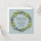 Cette belle faire-part de mariage dispose d'une couronne de verdure luxuriante en vert citron et turquoise foncé. L'arrière - plan est une couleur turquoise claire et poussiéreuse.
