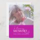 Annoncez le décès de votre être cher et les détails de la célébration du service commémoratif de la vie avec ce rose violet foncé, et le service commémoratif blanc et funéraire deux faire-part d'invitation photo. Personnalisez avec votre lieu, une photo dans un cadre ovale et le nom de votre être aimé et les détails rsvp, plus une photo au verso avec les mots en mémoire d'amour et un petit coeur. Art et design originaux par www.mylittleeden.com