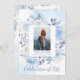 Customisez ce Mémorial, souvenir, célébration de l'invitation à la vie. Beau colibri et bleu rose fleurs de jardin design floral et votre photo 5x7 pour un service de souvenir