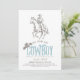 This retro and chic "she found her cowboy" bridal shower invitation features a cowboy on a horse and cowboy hat on a white background. The reverse side features a pale blue background with cactus patterns. Personalize for your needs. You can find matching products at my store.