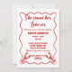 Throw the perfect nautical bridal shower with these invitations. The fun "She found her lobster" headline can be replaced with your own custom text like the playful slogan "She's a catch" or whatever else you like, and all of the text on these invites is ready for your personalized text. These invitations have a red and white color scheme with a red scalloped frame and my hand drawn realistic style lobster invitations in red.