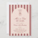 Birthday invitation featuring a hand-drawn coffee martini glass and coffee beans paired with elegant script and serif fonts in which your personalized information is written. The background is mulled wine red on a light background. Check out our store for more items from this collection.