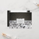 Invitations personnalisées de fête d'anniversaire de surprise. Damassé vintage noire et blanche élégante avec les accents métalliques argentés.