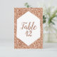 Cadre géométrique à paillettes rose gold avec lettrage en feuille rose gold. Parfait pour un mariage élégant ou glamour. Cartes de numéro de table avec police de caractères à la mode ! ~ Découvrez ma boutique pour voir toute la collection de mariage avec ce design !