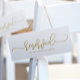 Panneau réservé à la pendaison du mariage (or) : Accrochez ces panneaux mariages des chaises, ou placez simplement à plat sur un siège de chaise. Ce panneau réservé mariage présente une calligraphie/typographie rebondissante moderne en or plat. Changez la couleur de la conception en choisissant une nouvelle couleur de remplissage !