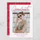 Invitations branchés de la fête de remise des diplômes avec la photo du diplômé sur le devant encadrée par une bordure blanche rugueuse. "Graduate" est affiché dans un script de signature rouge avec le nom du diplômé, le nom de l'école et l'année de fin d'études indiquées ci-dessous. L'invitation moderne de la fête de graduation s'inverse pour afficher les détails de votre fête de graduation avec un arrière - plan motif unique en rouge et blanc estampillé. Cet invitation de la fête de remise de diplômes photo est parfait pour les fêtes de fin d'études secondaires et collégiales.