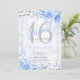 Invitation Silver Blue Floral Sweet 16 Parties scintillant en