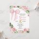 Invitation Silver Bow Sage Pink Coquette Floral Quinceanera