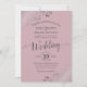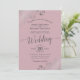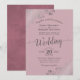 Cette belle faire-part de mariage présente un design simple mais élégant avec la calligraphie de script en dentelle sur un rose ou un arrière - plan mauve poussiéreux léger et frilly argent gris faux feuille dans les coins. Le libellé est formel, mais la disposition est moderne et design.