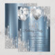 Invitation Silver Glitter Drips Balloons Blue Metallic 90th