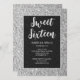 Invitation Silver gray scintille Sweet 16 élégant script