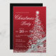 Invitation Silver Red Winter Christmas Tree Bow Holiday