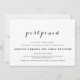 Pour les couples qui souhaitent un design de mariage simple et élégant. Elke Clarke © Le design présente les noms des mariés dans une police de caractères élégante avec le mot "reporté". Affiché en noir et blanc, mais peut être personnalisé selon vos couleurs de mariage pour le texte et l'arrière-plan. Ajoutez d'autres éléments graphiques, photos ou monogramme pour personnaliser ce modèle.
