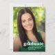 Cette carte de graduation simple et minimaliste présente une couverture en typographie blanche et une photo complète. Le mot "Graduate" est écrit en minuscules en caractères gras et tendance, avec le nom du diplômé et l'année de fin d'études ci-dessous. Le design de typographie blanche est placé dans le coin inférieur droit et recouvre une photo complète avec orientation verticale. Le verso de la carte de graduation comprend un modèle pour ajouter les détails de la fête de graduation.