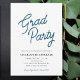Cette invitation pour une fête de remise de diplômes présente un design simple accentué par un texte en script bleu foncé qui indique "Fête de diplôme". Personnalisée avec tous les détails de votre fête de célébration de remise de diplômes.