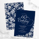 Simple et élégante invitation à la fête du 60e anniversaire en marine et argent. Design classique avec rose, faux feuille argent et police de script de typographie. Carte invitation tendance parfaite pour une célébration anniversaire élégante. Personnalisez avec vos propres détails. Peut être customisé à n'importe quel âge. Invitations Zazzle imprimées ou téléchargement instantané modèle imprimable numérique.