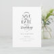 Ce simple noir et blanc élégant enregistrer la carte d'annonce de date dispose de beaux feuilles de laurier. Ajoutez vos détails de faire-part spéciaux dans un texte classique.