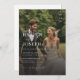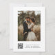 Ce Faire-part de mariage photo moderne et élégant QR Code présente des détails élégants de calligraphie manuscrite et une superposition de texte classique sur une photo de portrait sur le devant. Le dos a une photo de fond et des détails RSVP.