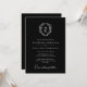 Cette élégante invitation au mariage présente un design noir et blanc classique et un raffinement intemporel. La pièce maîtresse du design est un monogramme raffiné entouré d'une délicate couronne botanique, dégageant une élégance sobre. La typographie serif propre est associée à un accent de script gracieux pour les détails clés, créant un mélange harmonieux de tradition et de style. Parfait pour des thèmes mariages formels ou minimalistes, cette invitation personnalisable donne le ton de votre journée spéciale avec son esthétique polie et intemporelle, assurant une impression durable sur vos invités.