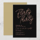 Invitation personnalisée de 30 ans "Flirty Thirty" noire et or rose simple avec une typographie classe et moderne. Personnalisez-la facilement avec le nom, l'âge et les détails de la fête.