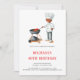 Beau et simple barbecue 40ème anniversaire invitation avec une illustration d'un homme noir cuisine un steak. Illustré et dessiné par Patricia Alvarez.