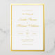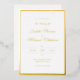 Cette faire-part de mariage simple et élégante en feuille d'or a fait équipe avec deux polices élégantes, ce qui lui donne un look moderne mais traditionnel. La bordure est une bande vendue de feuille d'or. Modifiez facilement le modèle à vos détails de mariage souhaités. Voir notre collection pour les articles de suite mariages correspondants. Simple Gold Foil White Mariage Foil Invitation.