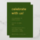 Simple Forest Green Mariage Foil Invitation, s'il vous plaît personnaliser l'avant de l'invitation avec le nom du couple, la date et l'heure du mariage et l'emplacement du mariage (ou autre libellé de votre choix), en utilisant le modèle de personnalisation en ligne avant de commander. Cette conception d'invitation présente de beaux textes en feuille métallique sur l'avant, dans une disposition simple et minimaliste. L'arrière - plan pour l'avant de la carte est "vert forêt" couleur; l'arrière de la carte est "vert forêt" également. La conception est rapide et facile à personnaliser et peut être utilisée pour un mariage ou un autre type d'événement de célébration planifié comme l'anniversaire, l'anniversaire ou la réunion de famille en personnalisant selon vos besoins.