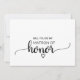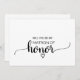 Cette carte d'honneur de calligraphie noir et blanc est parfaite pour un mariage à thème rustique ou moderne. Le design minimaliste est doté d'une police de caractères élégante et d'un coeur féminin. Le dos est vide, vous aurez donc beaucoup de place pour écrire une note personnalisée réfléchie.