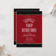 Une surprise moderne rouge et noir sophistiquée 60e anniversaire invitation dîner soirée avec texte blanc et des rayures dorées et argent.
