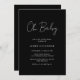 Invitation de baby shower noir moderne avec un design simple avec "Oh Baby" dans un style rustique typographie script. Cette élégante invitation sans distinction de genre avec un agencement minimaliste est idéale que vous ayez un garçon ou une fille.