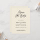 Whimsical minimaliste moderne, arrière - plan beige clair, personnalisable calligraphie noir, élégant mariage enregistrer la date. Le beige pâle et la typographie noire personnalisable évoquent une atmosphère d'élégance classique.