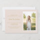 Faites de votre fête de remise des diplômes 2023 un moment exceptionnel en envoyant notre invitation moderne à obtenir un diplôme en rose et or! Montrez votre photo préférée de la haute année avec ce design simple et élégant. Faites savoir à vos amis et à votre famille quel est l'accomplissement d'être diplômé et donnez-leur tous les détails du grand jour. Faites preuve de créativité en ajoutant votre touche spéciale à cette invitation pour une célébration de graduation vraiment unique.