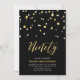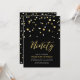 Célébrez votre jour spécial avec cette invitation minimale pour une fête de 90e anniversaire. Ce design présente une écriture élégante "Ninety" avec des confettis en forme d'hexagone dans une combinaison de couleurs noir et or. Plus de designs disponibles dans ma boutique BaraBomDesign.