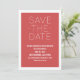 Annonce simple de sauvegarde de la date de mariage en rouge et blanc avec un design typographique moderne. Cette invitation tendance et chic est facile à personnaliser avec vos détails de mariage. Pour plus d'options de personnalisation, cliquez sur le bouton Personnaliser.