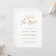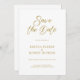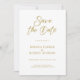 Design moderne minimaliste et fantaisiste, fond blanc, calligraphie script doré personnalisable, design élégant de save-the-date de mariage. Le fond blanc avec typographie dorée personnalisable évoque une sensation d'élégance classique.