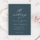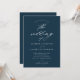 Une invitation de mariage bleu marine simple et chic avec des détails de calligraphie élégante et un texte classique. Cliquez sur le bouton modifier pour personnaliser ce design.