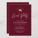 Simple Script Maroon Graduation Party invitation avec élégante feuille d'or casquette et typographie minimaliste. Cliquez sur le bouton Modifier pour customiser cette conception. Ajoutez facilement une photo à l'arrière.