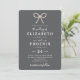 This Simple Smoked Oyster Gray Chic Pearl Bow Trendy Wedding Invitation pairs a moody gray backdrop with a delicate beaded pearl bow for a clean, modern, and stylish look. The warm neutral color keeps the layout minimal and airy, while the white lettering and elegant mix of serif and script fonts give the design a polished, romantic finish.