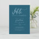 Carte d'invitation à la fête d'anniversaire minimaliste avec texte de script qui dit "shhh... c'est une surprise !" en haut. L'Arrière - plan est turquoise.