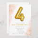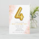 Or simple et doux et rose avec 4 invitations à la fête d'anniversaire design ballon pour le 4ème anniversaire de votre petite fille. Customisez avec les détails de votre fête.